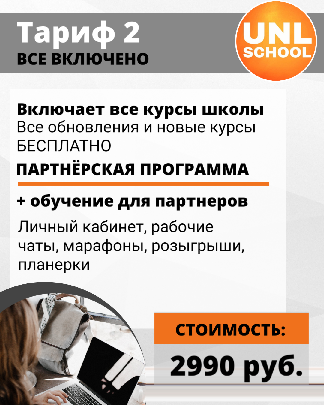 Тариф 2 - 2999 руб. включает все курсы школы+ реферальная программа. 2990 руб. ключ доступа 990 руб.